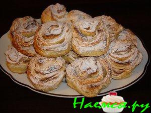 Нарежьте рулеты кусочками, толщиной 1,5см и положите на протвень срезом вниз.