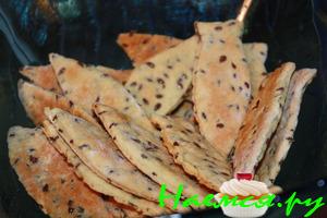 Охлажденное тесто раскатываем в тонкий пласт, толщиной около 2 мм. А теперь фантазируем: можно вырезать кружочки, ромбики, квадратики… При желании можно сверху смазать водой и посыпать кунжутом, семечками или любимыми специями. Крекеры уложить на противень, застеленный бумагой для выпечки и выпекать 8-10 минут при температуре 190-200 градусов.