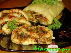 Рулет "Улитка" из теста Фило с картофелем, шпинатом и грибами
