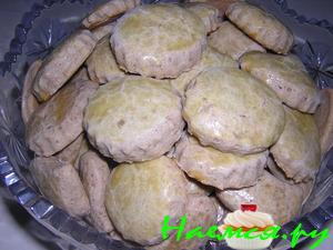 Масло взбить с сахаром до бела, ввести яичный белок, муку и замесить тесто.
