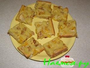 смазать взбитым белком, посыпать измельчёнными орехами.