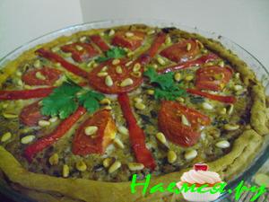 Тесто разделить на две неравные части.Большую часть раскатать листом толщиной 5мм и выложить в смазанную раст.маслом форму(18-25см),не забывать о бортиках.Выложить и разровнять фарш.Вторую часть также раскатать,накрыть фарш и защипать края.
