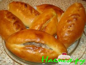 Из расстоявшегося теста раскатать сочни и сформировать пироги.Форма может быть любая по вашему вкусу.Уложить на лист застеленный пекарской бумагой, дать расстояться мин 20.