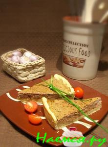 Снова кладем тесто 1/3, затем повторяем ингридиенты и сверху добавляем укроп и петрушку,порезанные мелко. А вот тут я не удержалась и посыпала зирой(от души), не помешает:)))