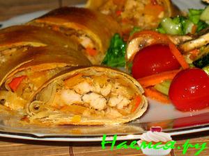 Овощную массу равномерно распределить по тесту