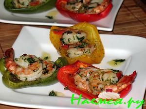 Каждую паприку разрезать на четвертинки,очистить от семян ,ножки и перегородок