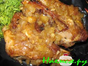 4 ст. ложки меда смешать с лимонным соком довести до кипения, готовить 7 минут помешивая. Снять с плиты, добавить обжаренный чеснок, кориандр и порезанную мелко зелень. Соус готов.