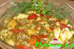 Баклажаны режем кружочками и обжариваем, выкладываем на салфетку чтобы стекло масло. Далее на блюдо выкладываем баклажанчики смазываем нашей заправкои и кладем кружек помидора и снова смазываем заправкой...