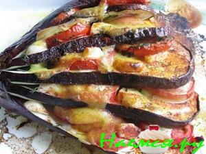 Баклажаны надрезаем тонко вдоль до плодоножки-хвостика как веер(не разрезая до конца,чтобы визуально баклажан смотрелся целым),