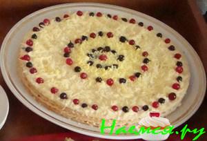 Выпекаем 4 коржа из слоеного теста, правила выпекания посмотреть на пачке.