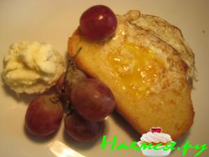 Яйцо разболтать с молоком,ломтики хлеба смочить и обжарить.Слегка обжареные ломтики хлеба уложить на противень или сковороду.Яйца разбить и отделить желток от белка.В белки добавить щепотку соли, взбить в крепкую пену и переложить на кусочки обжаренного хлеба.В белке сделать углубление и осторожно переложить туда по одному целому желтку.Запечь в духовке,пока желток не затвердеет,и подать горячими.