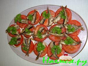 Бутерброды со шпротами, помидорами и сыром