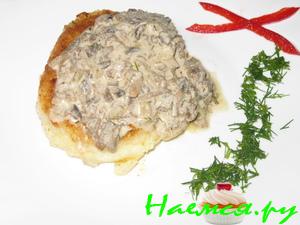Разогреваем на сковородке масло, кидаем оладушное тесто, формируем лепешку, на нее кладем грибную массу. Массу накрываем тестом. Обжариваем с двух сторон.