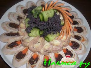 Куриный рулет с мёдом,черносливом и лесными орешками