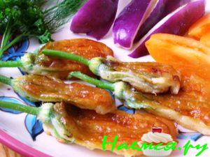 Фаршированные цветки цуккини и тыквы в кляре