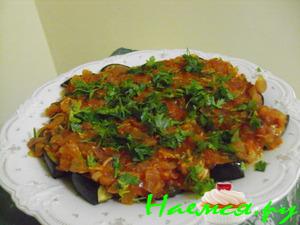 Баклажаны помыть,обсушить,проколоть в нескольких местах и запечь в разогретой духовке 220*С-35-45минут.Готовые баклажаны разрезать пополам остудить и отжать сок.Очистить,мелко нарезать и отставить в сторону.