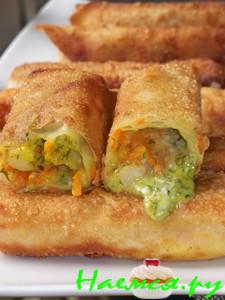 Положить на лист фило полоску цукини+морковку+пророщенную фасоль+болгарский перец+пекинская капуста,завернуть Аккуратно,смазать водой край и закрепить.