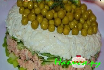 Приготовьте французский салат: ингредиенты нарежьте на мелкие (1/2 см) кубики, добавьте соус «тартар». Салат можно приправить солью, лимонным соком и горчицей. Выложите салат на поднос или тарелку, на него выложите яйца (срезанной частью вниз). Из остатков желтков и сливок приготовьте соус «тартар» и вылейте на яйца и салат. Блюдо можно украсить тонкими ломтиками лимона, нарезанным на кубики желе, зеленью петрушки.